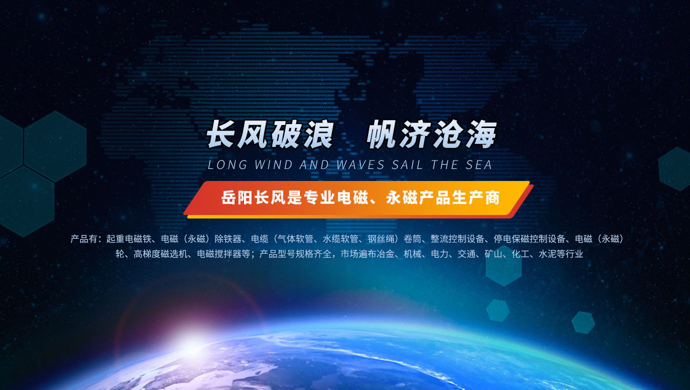岳陽長風(fēng)電磁機械有限公司是生產(chǎn)電磁、永磁產(chǎn)品的專業(yè)廠家,傳統(tǒng)產(chǎn)品有:起重電磁鐵、電磁(永磁)除鐵器、電纜(氣體軟管、水纜軟管、鋼絲繩)卷筒、整流控制設(shè)備、全免維護停電保磁控制設(shè)備、電磁(永磁)輪、高梯度磁選機、電磁攪拌器等;產(chǎn)品型號規(guī)格齊全,市場遍布冶金、機械、電力、交通、礦山、化工、水泥等行業(yè),產(chǎn)品暢銷國內(nèi)二十多個省市自治區(qū),并遠(yuǎn)銷于日本、歐美和東南亞等國家。近幾年來,又成功的開發(fā)和研制了磁力開卷器專用型永久磁鐵(電磁鐵)、吸吊鋼帶卷用的高溫起重電磁鐵等高科技產(chǎn)品,深受各大鋼鐵公司薄板生產(chǎn)廠家的青睞。